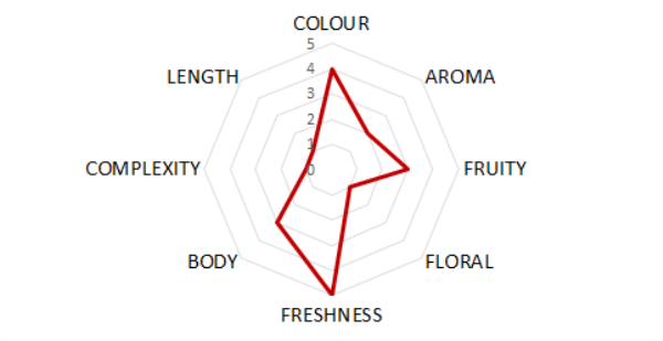 Couleur : Rubis, Goût et arôme : Élégant et fruité. Jeune, frais et avec une acidité parfaite
